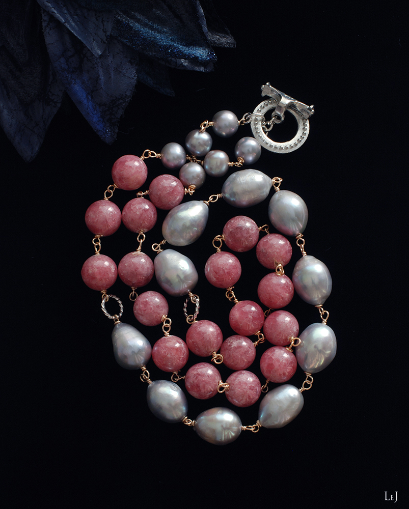 素材:ロードクロサイト(インカローズ)・淡水パール・シルバー925・アーティスティックワイヤー・ピューター
