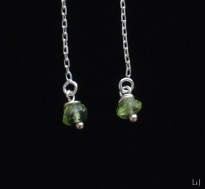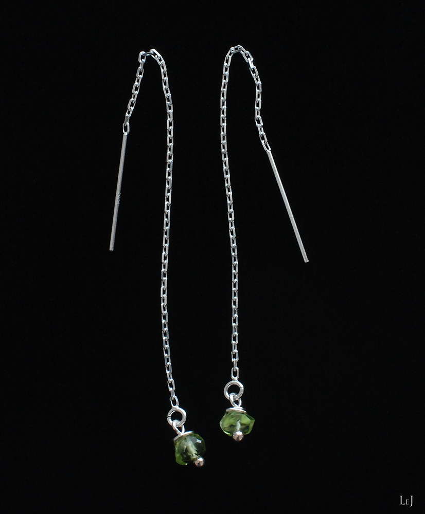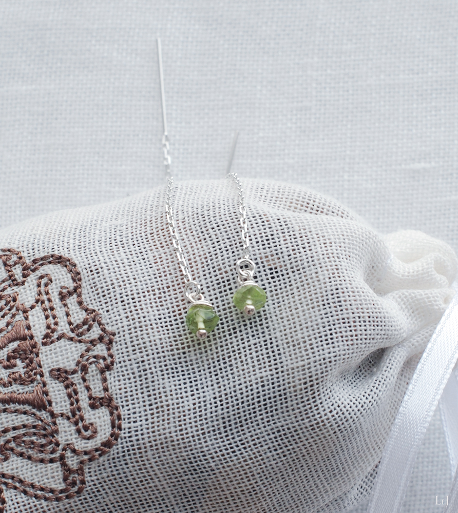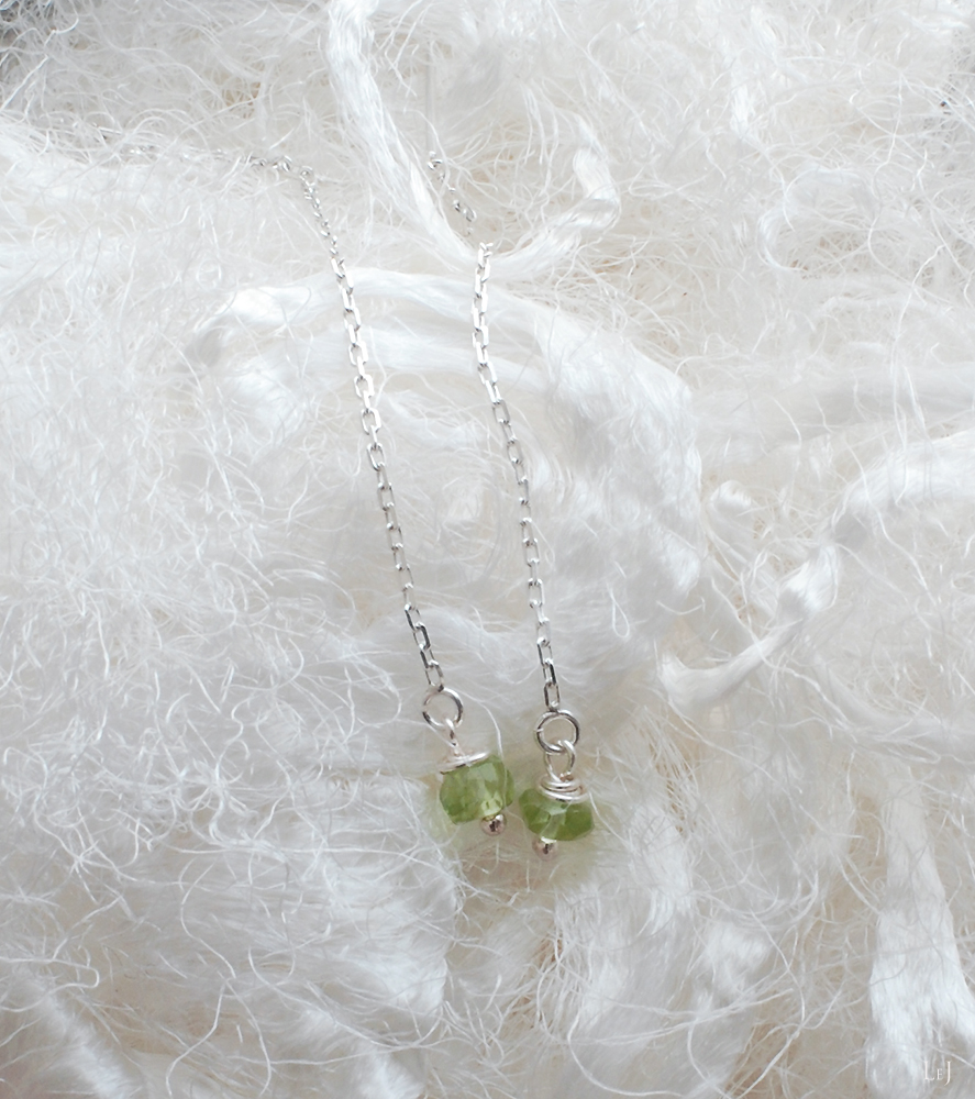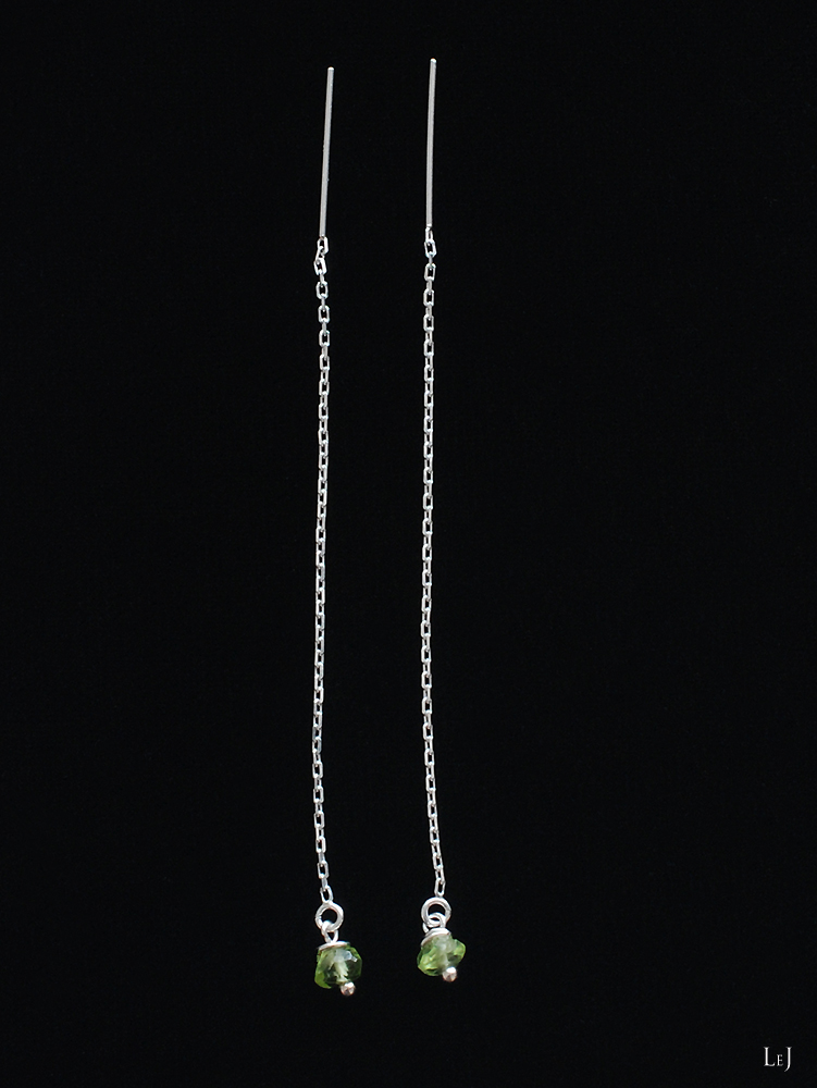 ペリドットのグリーンはどこまでもクリアでシャープ、ざくざくっと切り出したようなタンブルカットがよく似合います。ピアスパーツにもニュアンスがよく合うものを選んでシンプルに、天然石の魅力をそのまま活かしています。ちょっとしたお出掛けに、ランチタイムに。