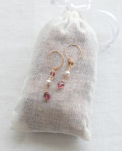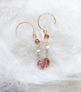 さまざまなトーンのレッドからピンク色の、貴石や半貴石の素材を集めたブレスレット Solangeとお揃いでコーディネートしていただける Solange-p(ソランジュ ピアス)。