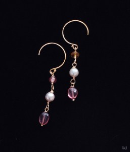 素材:サファイア・ライトグレイアコヤパール・ピンクスピネル・K14ゴールドフィルド