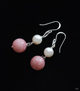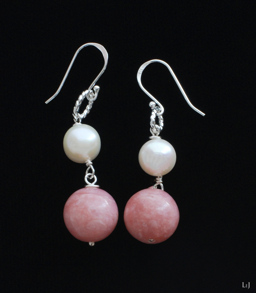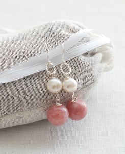 ⌀12mmのピンクオパールと温かみのある白いパール、シルバー925のクラシカルモダンのリングが春の光を集めるピアス。Pénélopeネックレスと同じ素材で作りました。