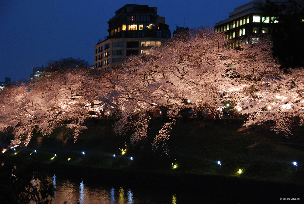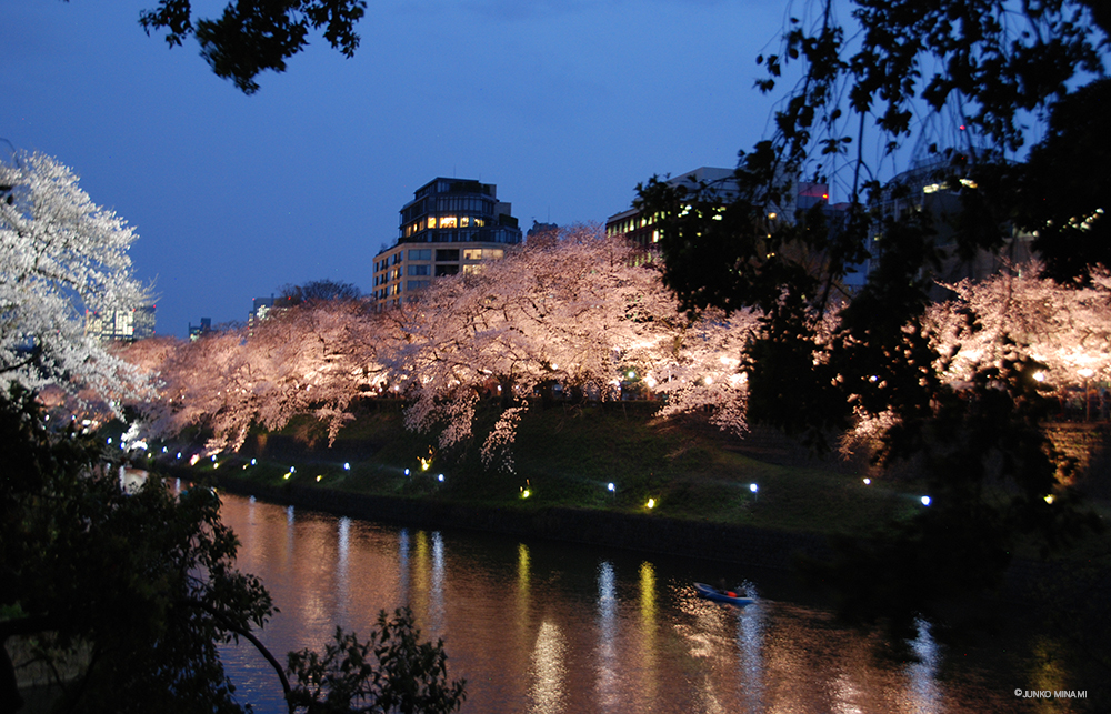 例年、こちらの花筏の頃の写真を撮っているのですが、半日早かったようです。それでも風が出て来て、いったん帰る頃には花びらがお濠を埋め始めていました。お友達が夜桜は良いよとFacebookに写真を上げていらしてそれがあまりに素敵で、とうとう都内の用事を済ませた帰りにまた夜桜を観に舞い戻ったのでした。久しぶりの14,000歩のお散歩でした。