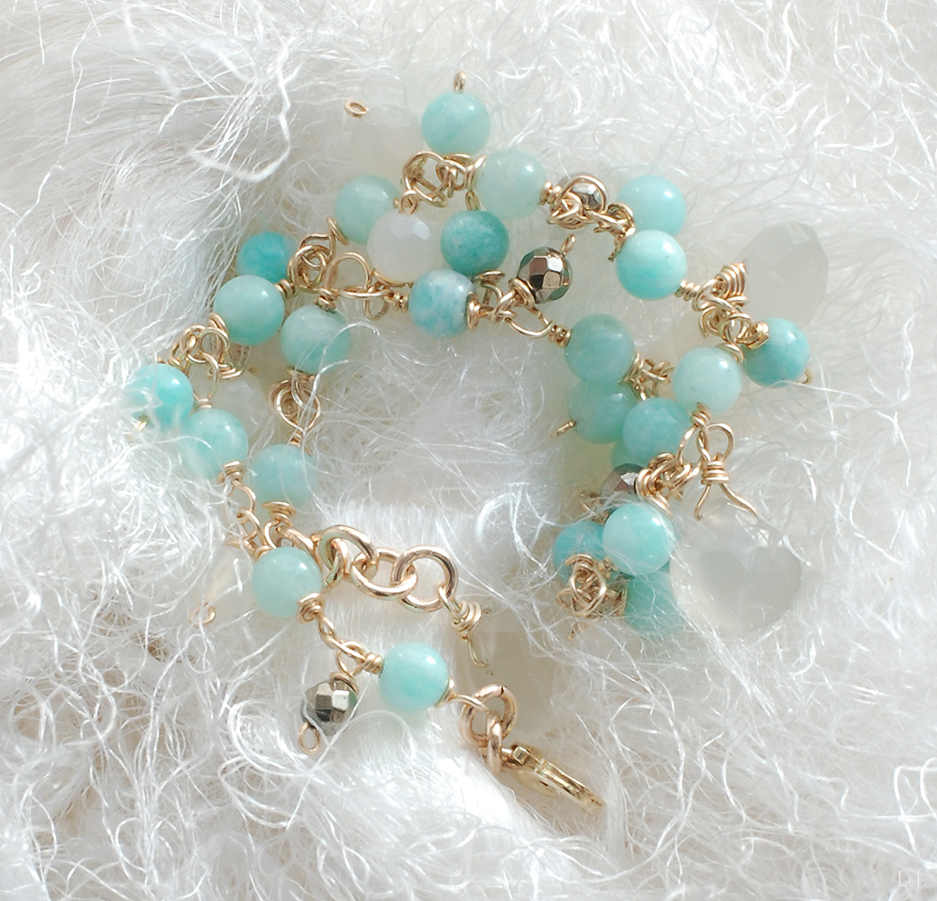 ゆたかなマチエールのアマゾナイトとホワイトムーンストーンのブレスレット、 Léonor の留め具を変更してあらためてONLINE STORE 公開しました。