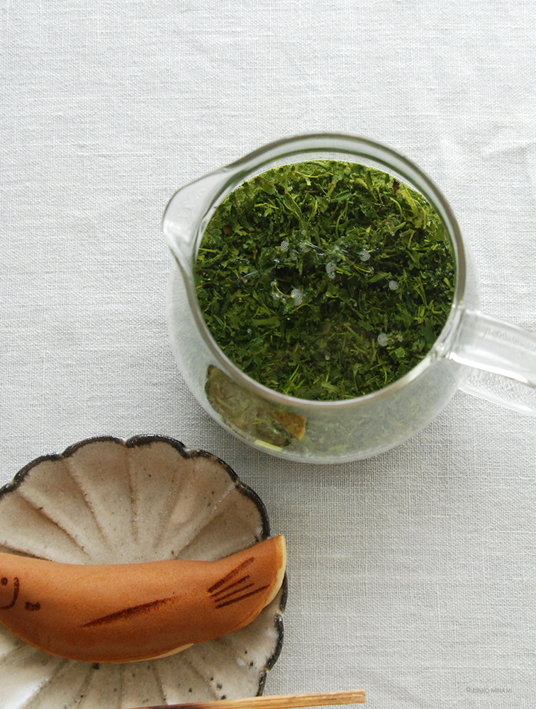 撮影に大忙しのあと、お茶はゆっくりと水出しにしてガラスの器で。とろりとした風味の味わいが心をほっとさせてくれました。ごちそうさまでした。