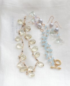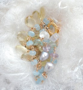 素材:レモンクオーツ・レインボームーンストーン・グリーンアメジスト・ピンクアメジスト・淡水パール・アクアマリン・シルバーパイライト・K14ゴールドフィルド・ヴェルメイユ