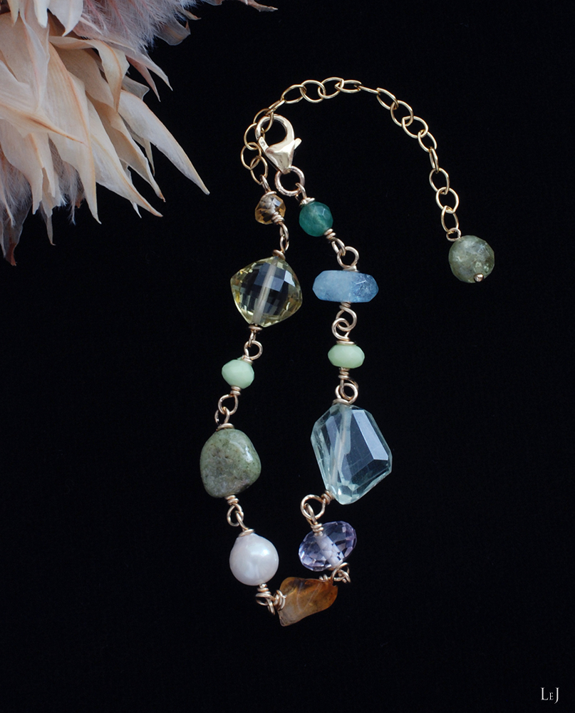 自然界のなかにあるような色彩の天然石を集めて作ったブレスレット Amalfi22。