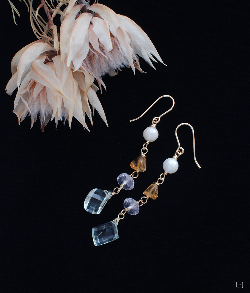 自然界のなかにあるような色彩の天然石を集めて作った Amalfi22ピアス。