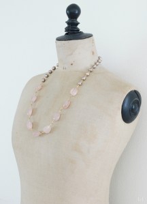 ちいさくてきらきらした天然石を紡いでブレスレットを作るときも幸せだけれど、こんな大人の女性ならではのネックレスが仕上がったときには言い表すのが難しいような、特別な愛おしさがあります。春夏のリネンのシャツを少し開けてキャミソールをのぞかせて、デコルテには落ち着いたトーンの大粒のネックレスを。