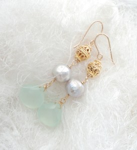 素材:グリーンカルセドニー・淡水パールバロック・ヴェルメイユビーズパーツ・K14ゴールドフィルド
