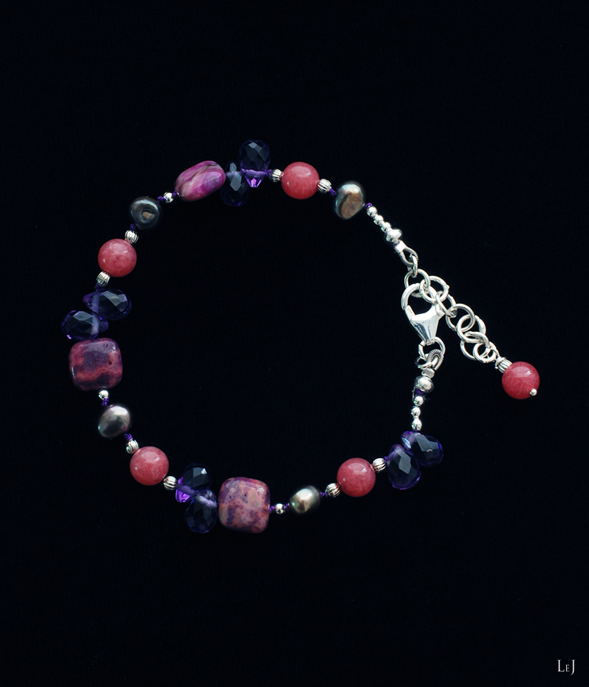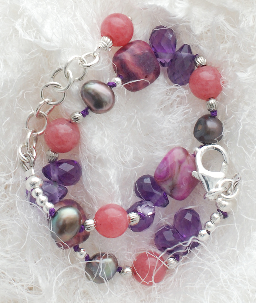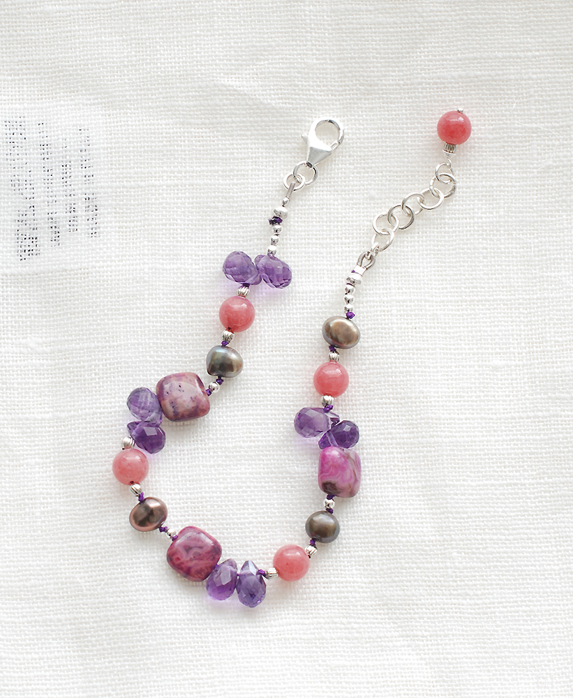 素材:マーブルピンクアゲート・ピンクジェイド・アメジスト・淡水パール・シルバー925・メタル・シルク糸