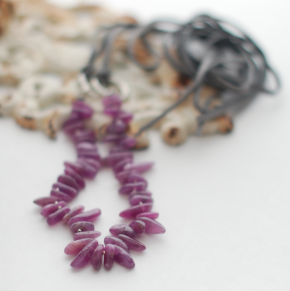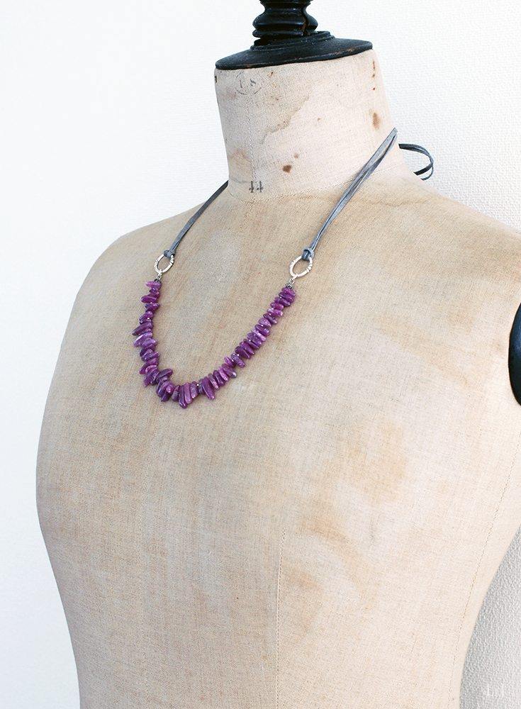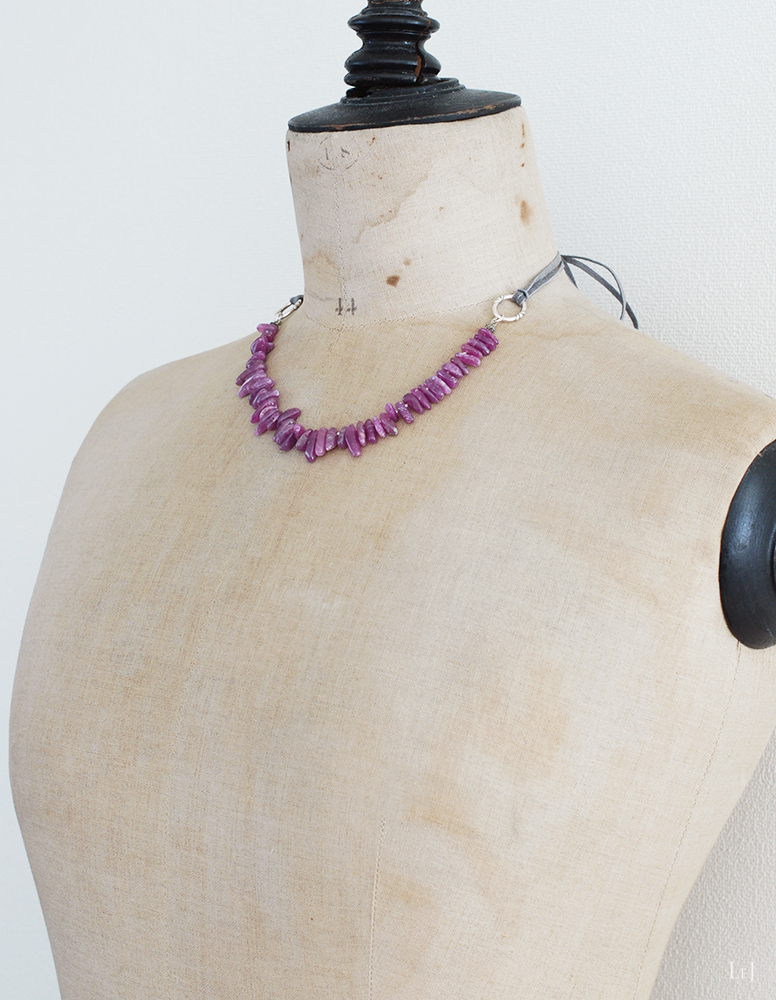 ルビーにピッグスキンのレザーを合わせたネックレス Rosaire(ロゼール) の写真を撮り直しました。