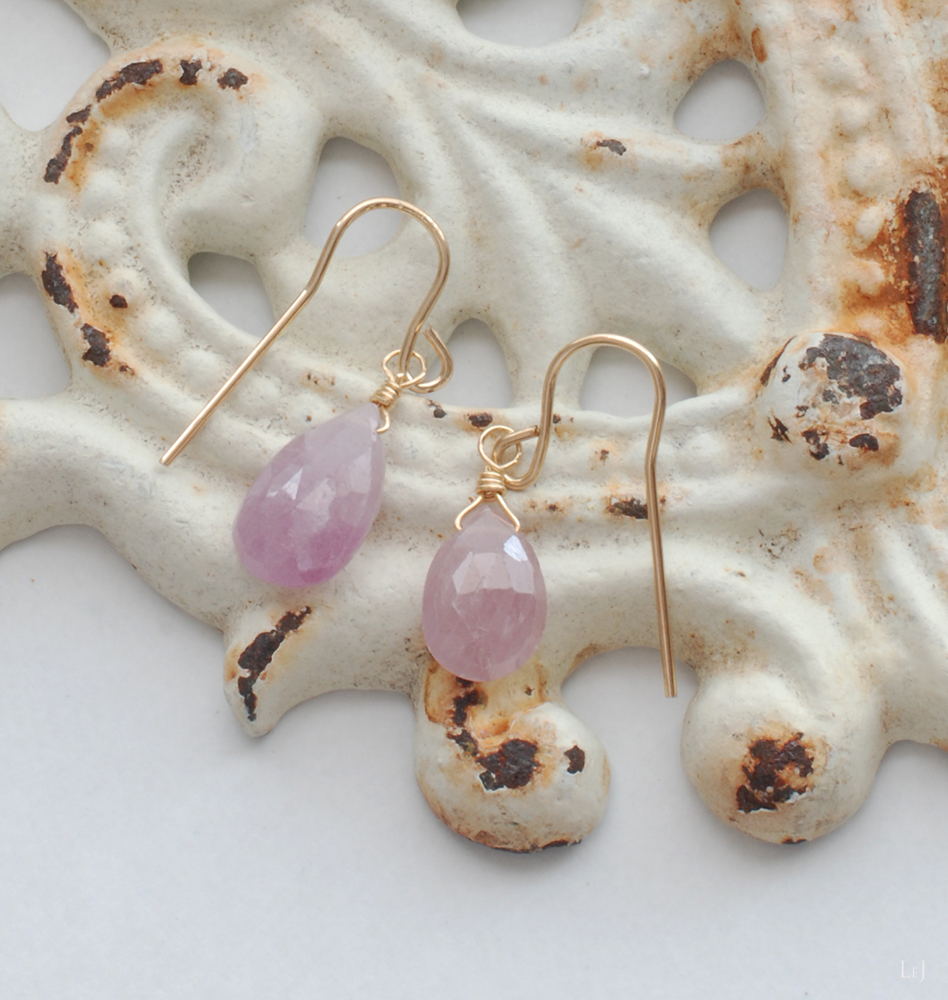 抑えたトーンの優しいピンクのサファイアのピアス Lia78 を製作、ONLINE STOREに公開しました。
