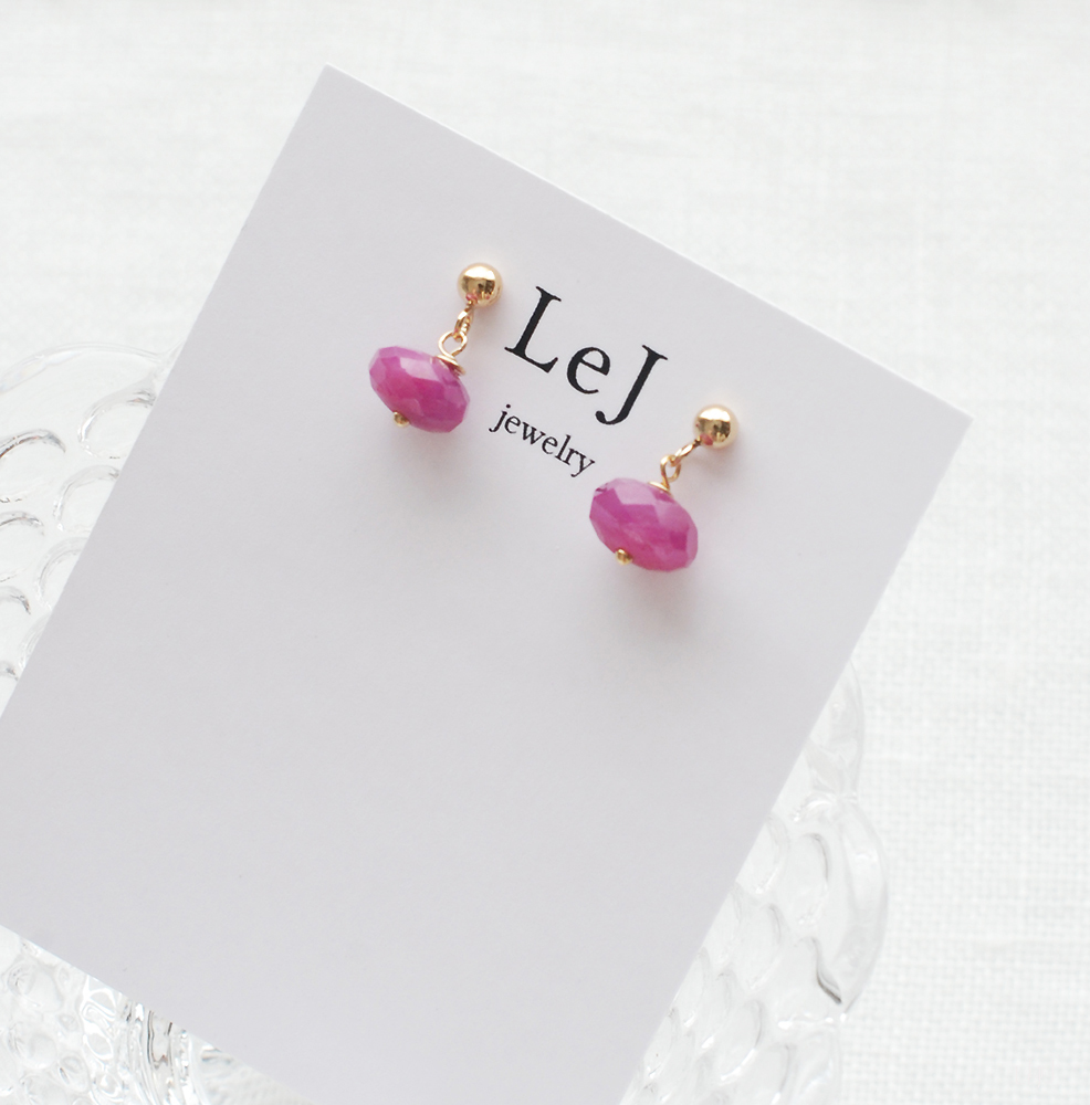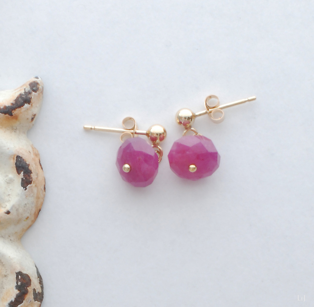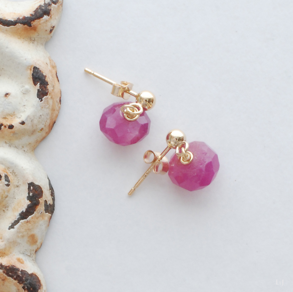 シンプルで短く下がるピアスがお好きなかた、お仕事でも天然石を楽しみたいかたにお薦めしたい、美しいマゼンタ色のルビーのピアスです。