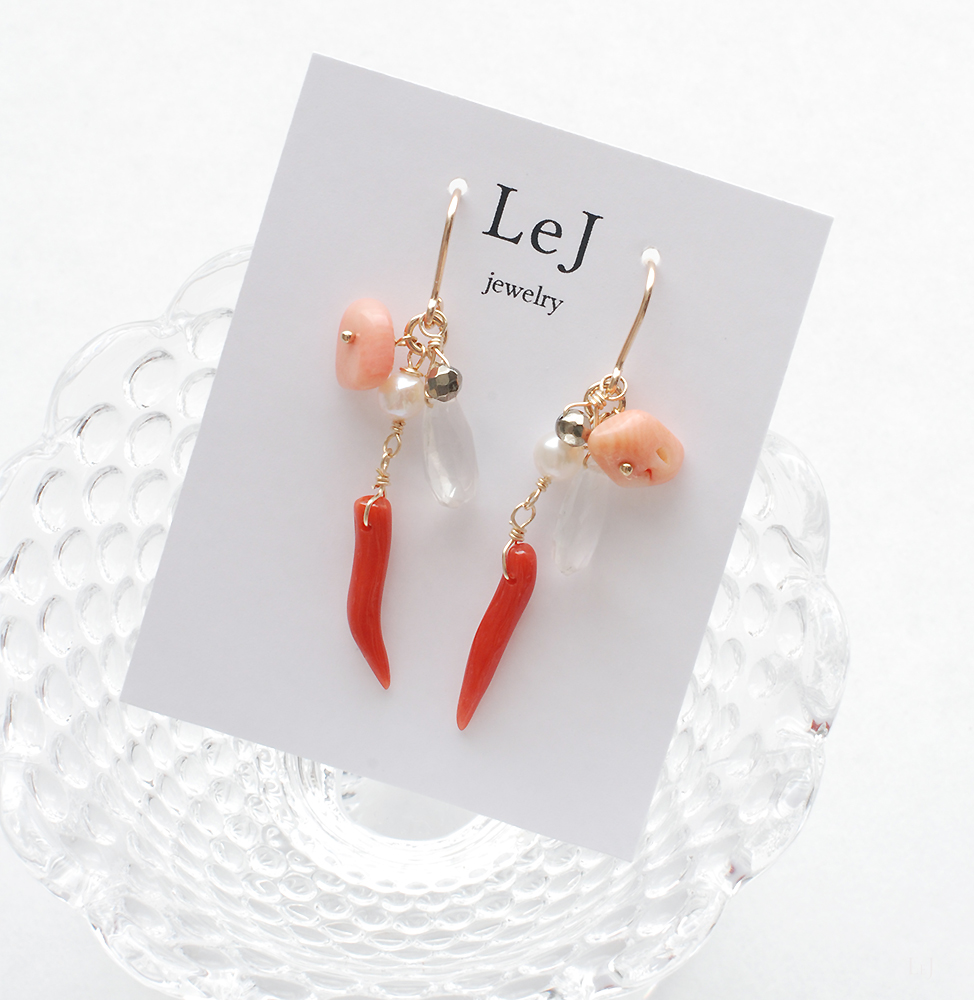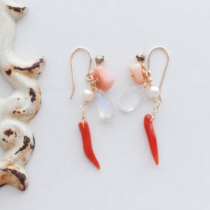 サルディニア産珊瑚のクリアレッドが大人の女性に似合うピアス Amalfi58 を製作、ONLINE STOREに公開しました。