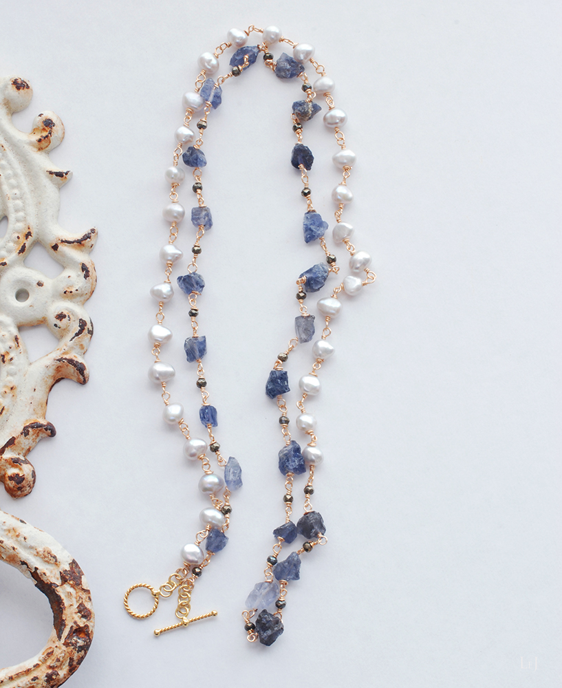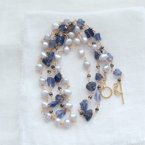 素材:カイヤナイト・淡水パール・パイライト・アーティスティックワイヤー・ヴェルメイユ
