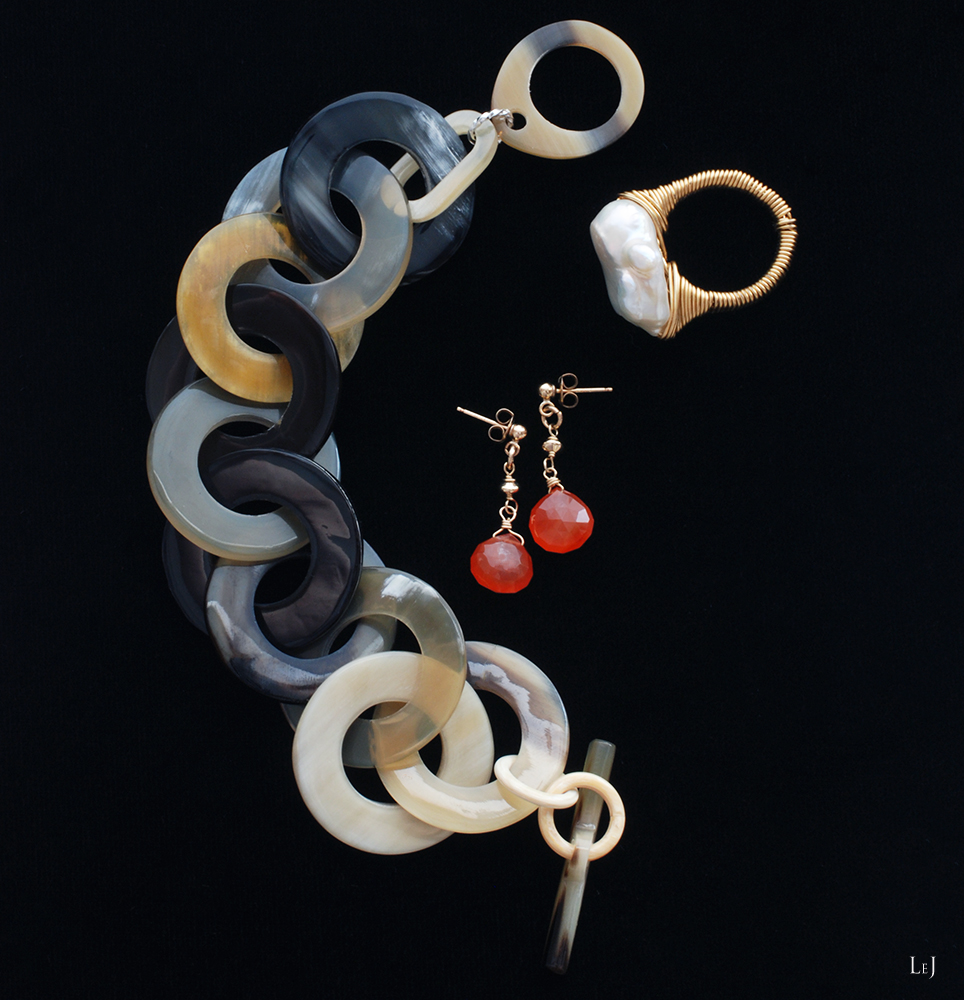 Gisèle(ジゼル) は、水牛の角を素材にした、ホーンのジュエリーのシリーズ。