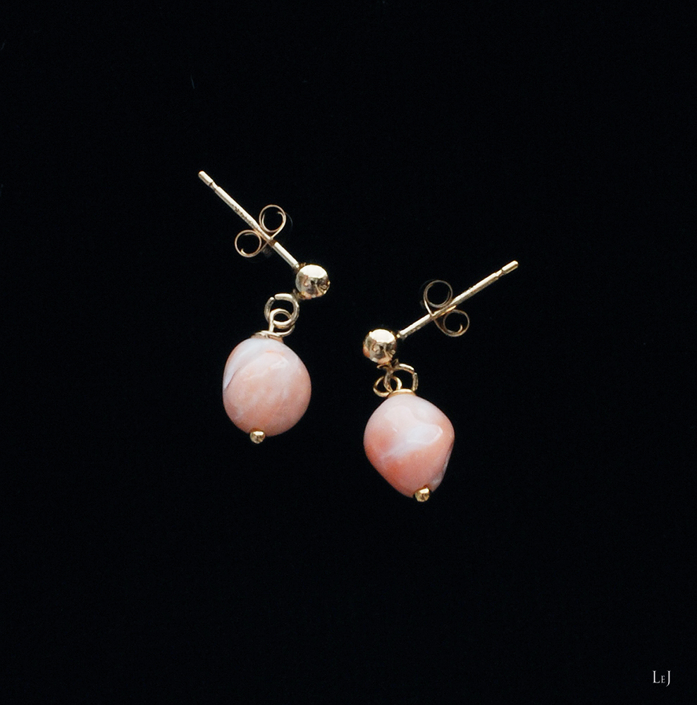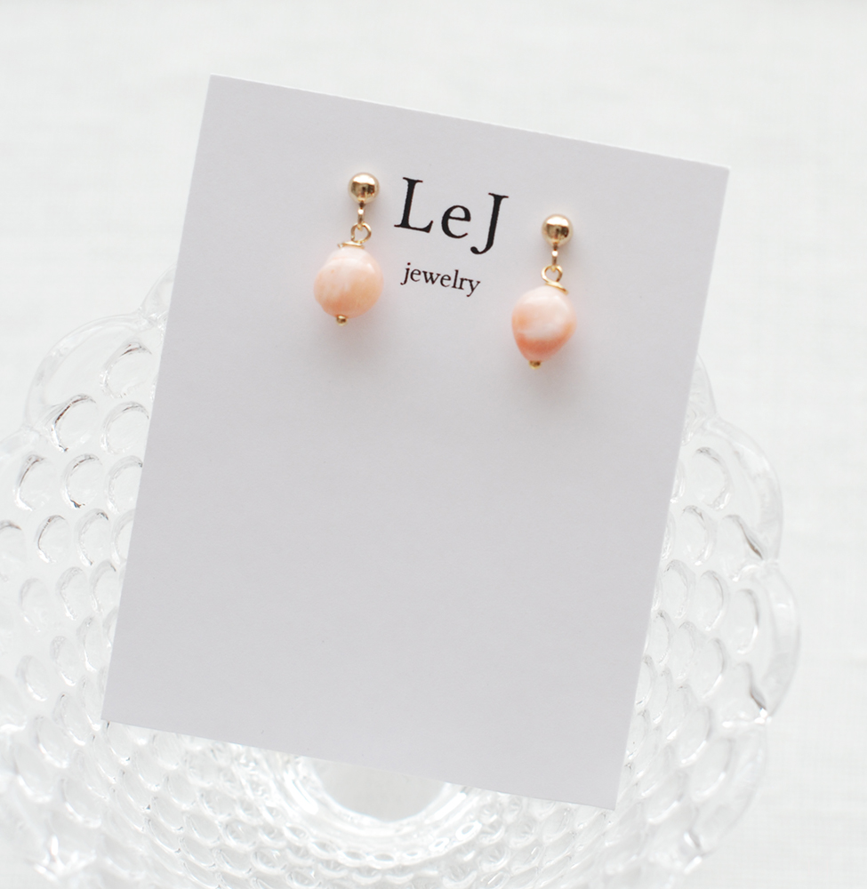 小さなナチュラルコーラルをシンプルなボールポストピアスに。