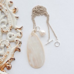 チェーンは62cm、ホーンのトップは68×32×2mm。着けているのを忘れるほど軽く、自然のままのタブローを楽しんでいただける素材です。ふだんあまり目にする機会がないホーン、目についた時には買うようにしています。季節の変わり目のシンプルコーデにどうぞ。