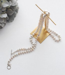Inès(イネス)は、明るいグレイにシャンパンカラーが溶け込んだようなパールのネックレス。
