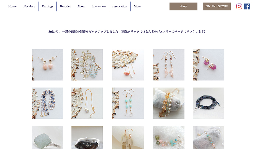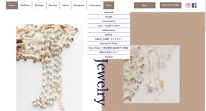 画像は、PC表示で開いたホームページのトップ画像と、recent jewelsのページ画像です。ページ上部にメニューボタンを配置しました。今まで出来なかった画像のモーション展開など、せっかくのリニューアルの機会を楽しんでいただけるようこれからも工夫してまいります。
