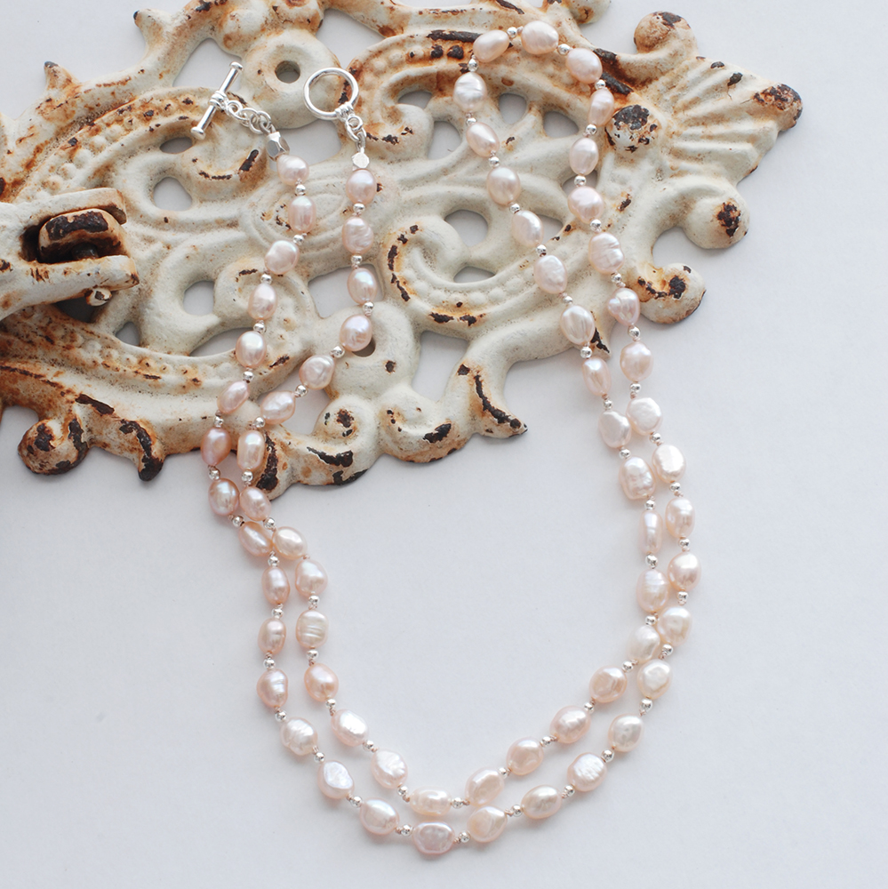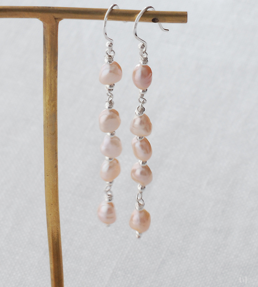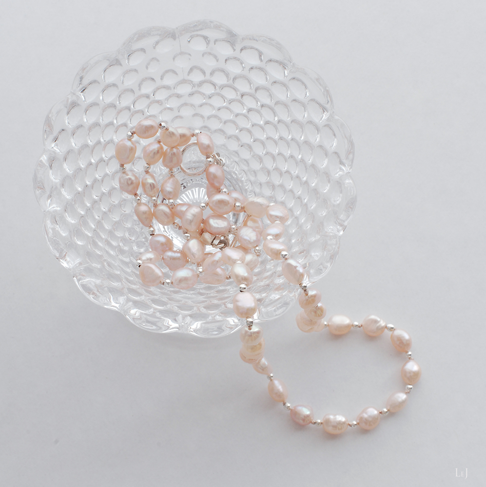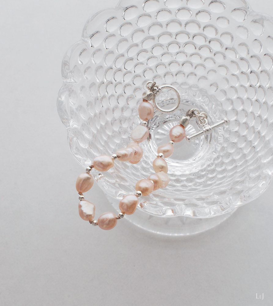 素材:淡水パールパウダーピンク・シルバー925・シルク糸・メタル・シルク糸