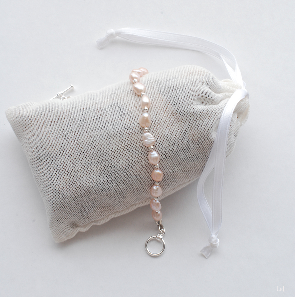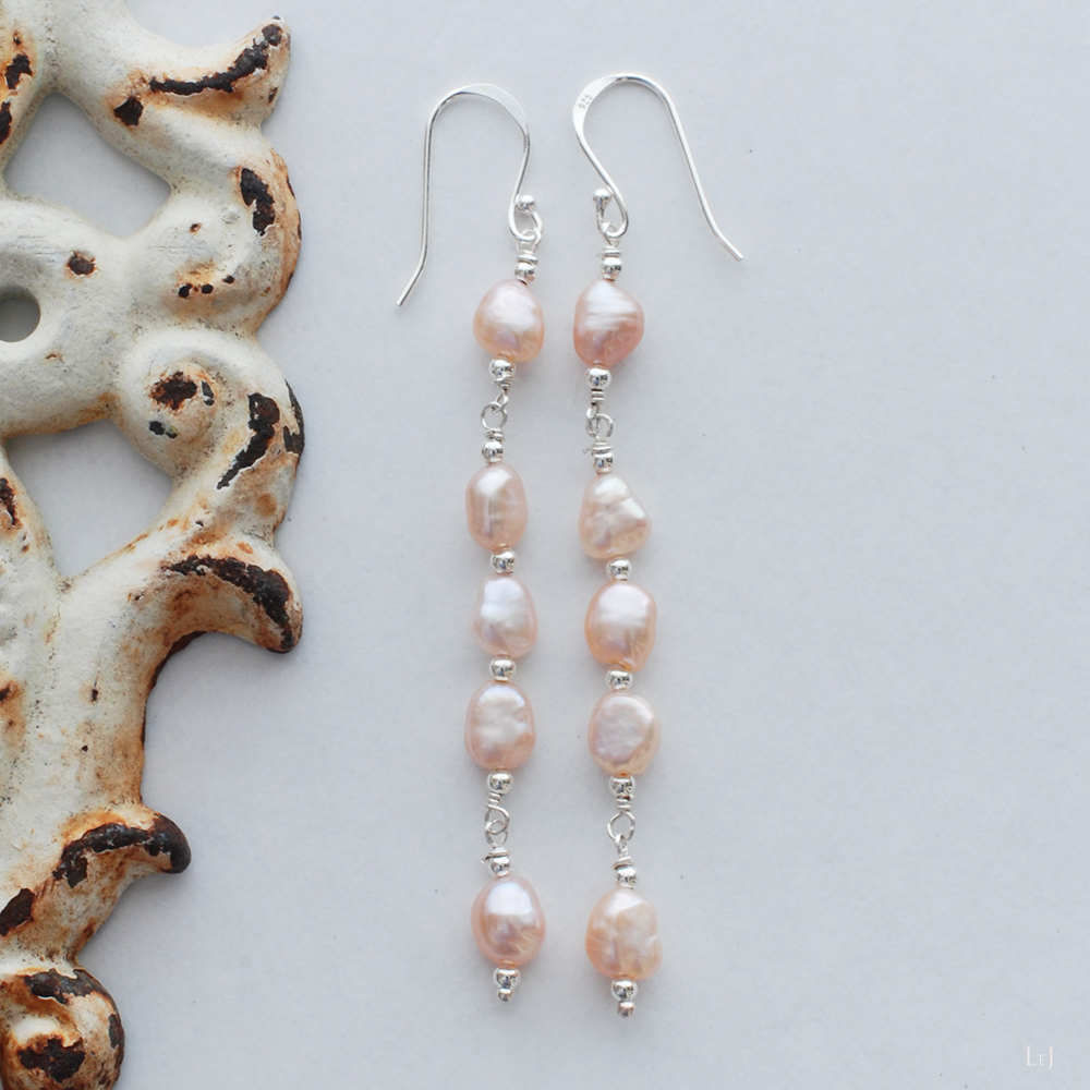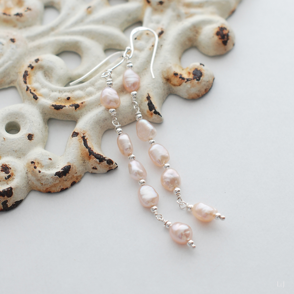 素材:淡水パールパウダーピンク・シルバー925・シルク糸・メタル・シルク糸