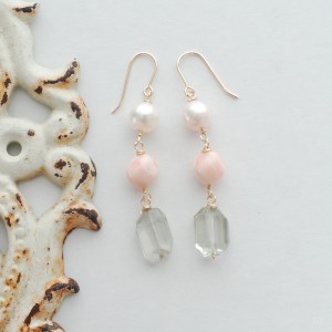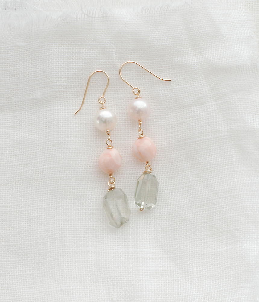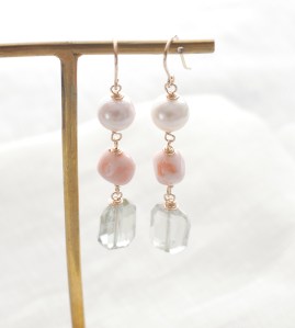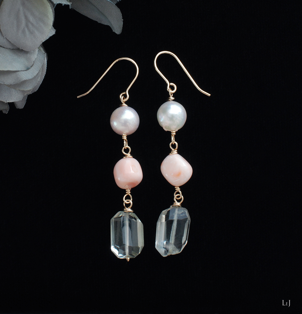 Amalfi67は、LeJが大好きなコーラルとグリーンアメジスト、アコヤパールのピアス。