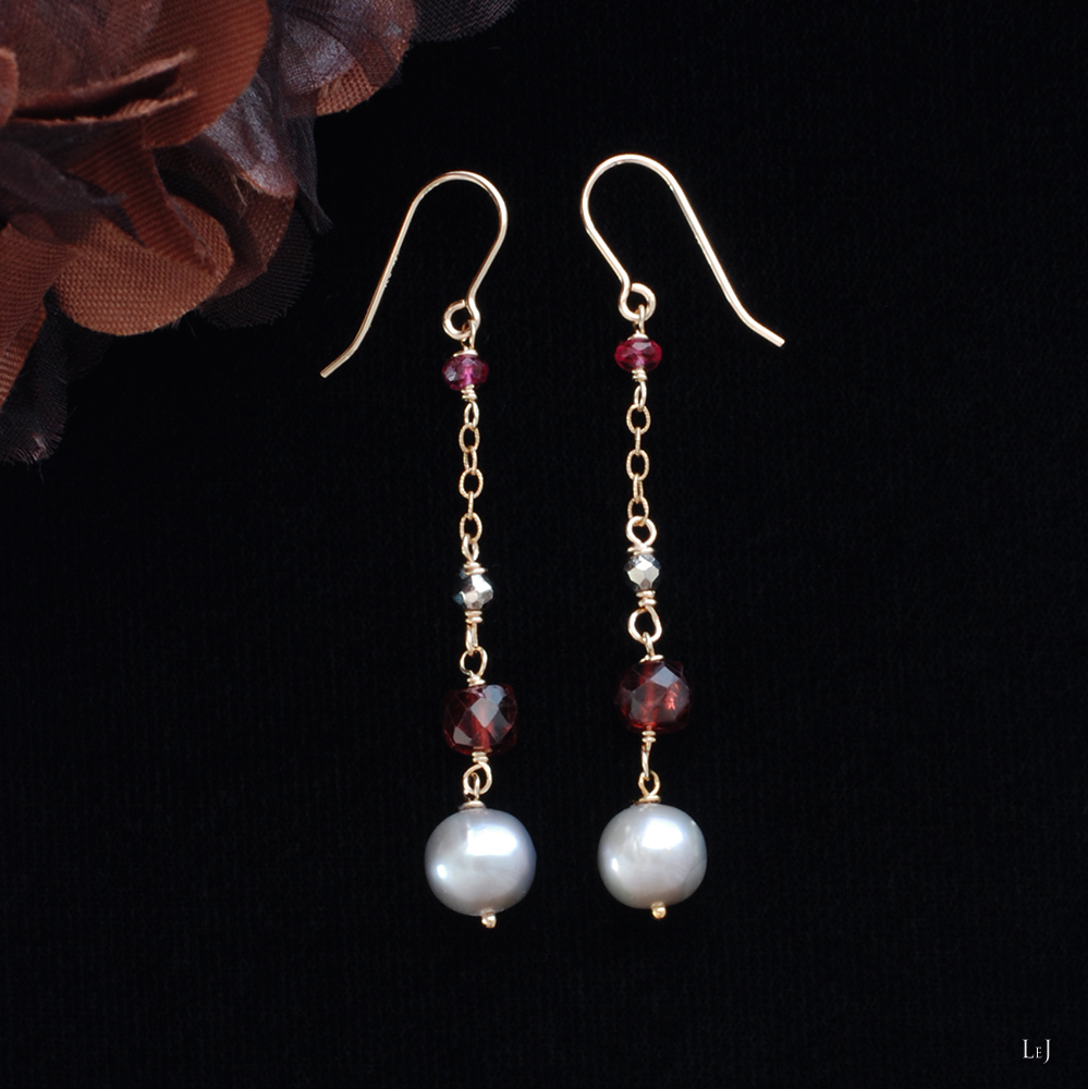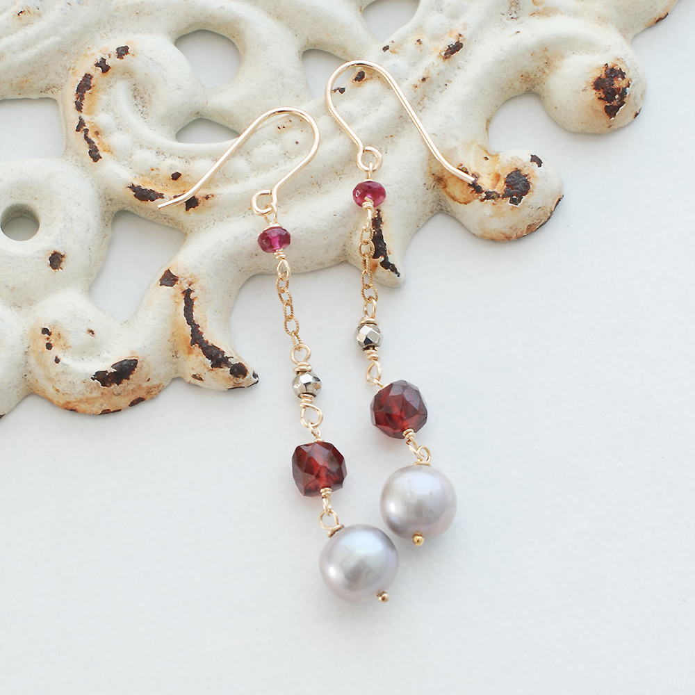 素材:ピンクトルマリン・ガーネット・アコヤパール・シルバーパイライト・K14ゴールドフィルド