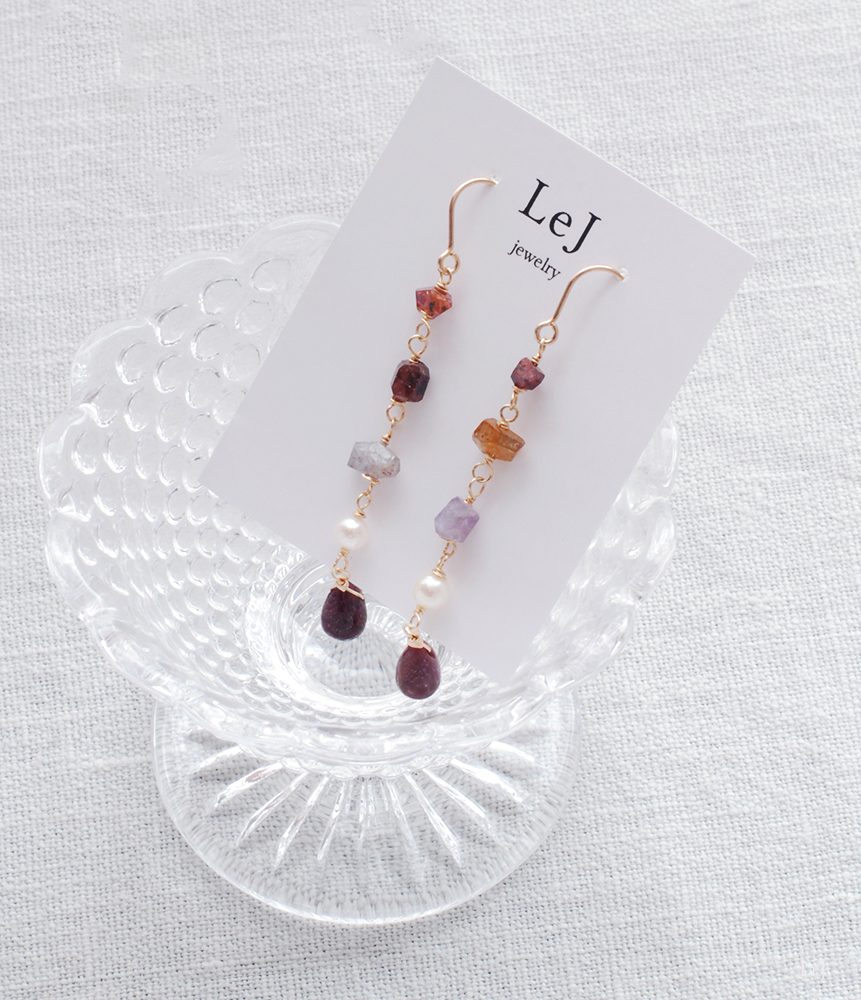 素材:サファイア・アコヤパール・ルビー・K14ゴールドフィルド