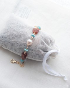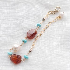 モザンビーク産ガーネットのこのようなカットはレアになって来ました。まろやかなバロックのアコヤパールとスリーピングビューティターコイズと一緒になって、やわらかな天然石のよさをたっぷり湛えたジュエリーです。