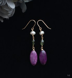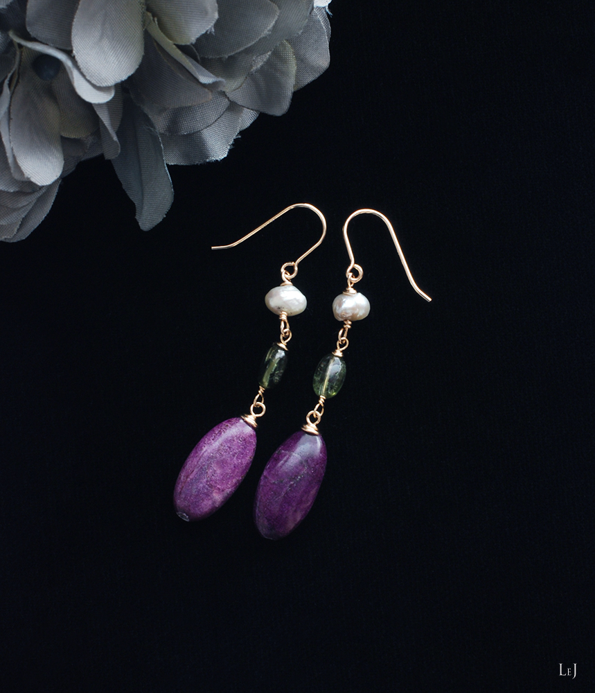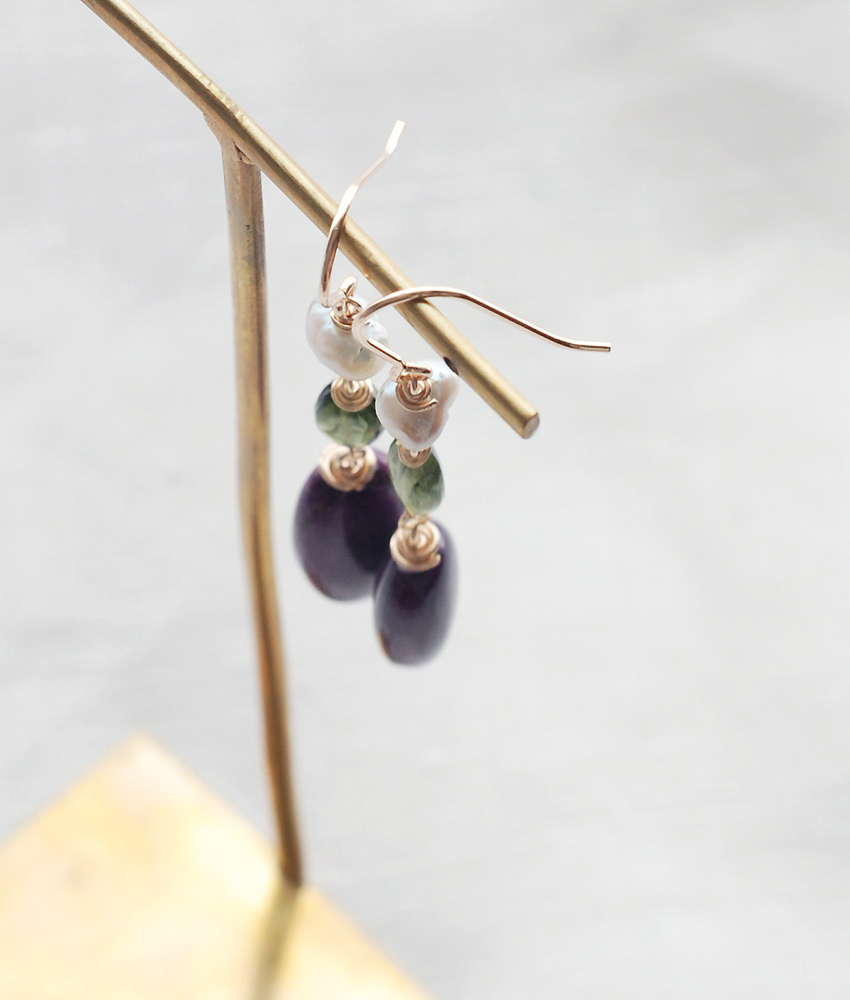 素材:パープライト・グリーントルマリン・淡水パール・K14ゴールドフィルド