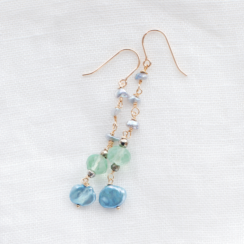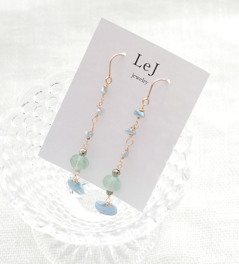 ミントブルーやペールグリーンなどの春夏の陽光を思わせる色をちりばめたピアス Lou2 をONLINE STOREに公開しました。