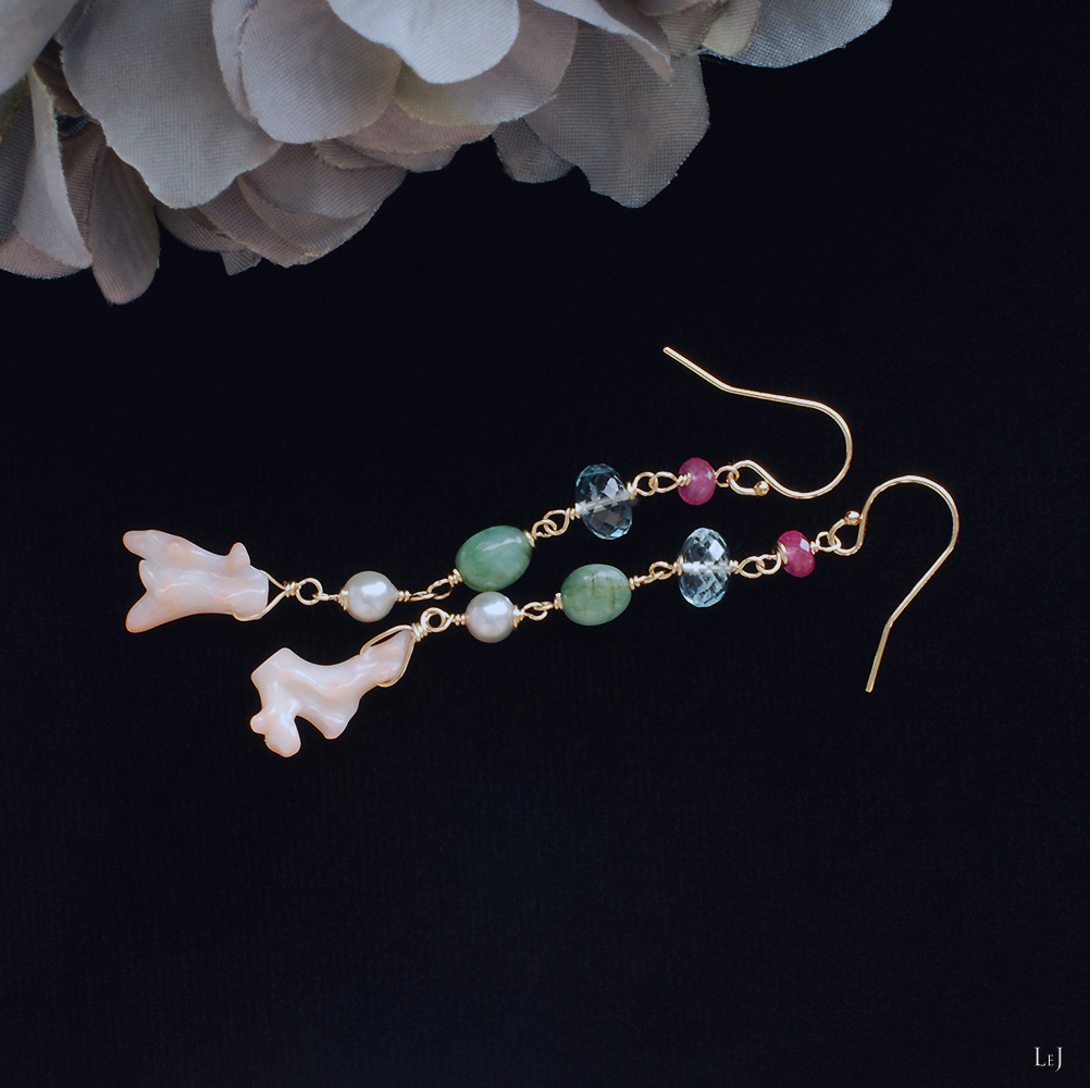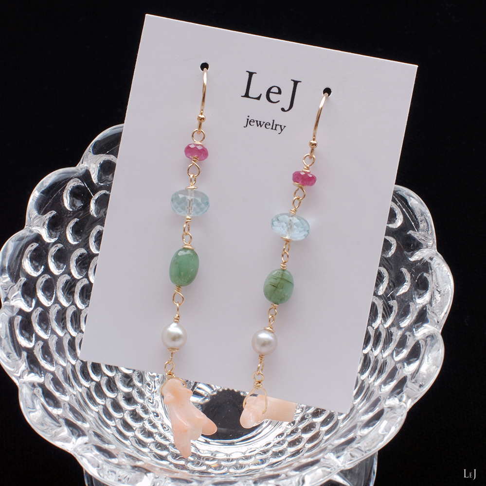 LeJ ホームページトップに”COMING SOON!アイコン”がありました ルビーとアクアマリン、エメラルド、アコヤパールとピンクコーラルのピアス Dolce29 は、ご予約によりご購入済みとなりました。