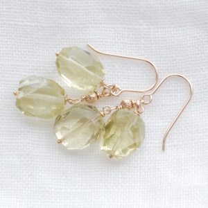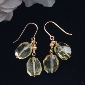 Dolce18はレモンクオーツをふた粒揺れさせたピアス。