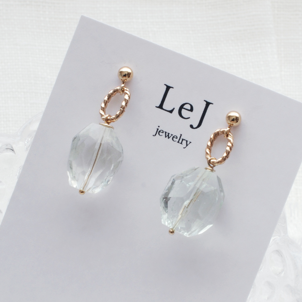 Dolce19はグリーンアメジストにK14ゴールドフィルドのゴールド色をマリアージュしたピアス。