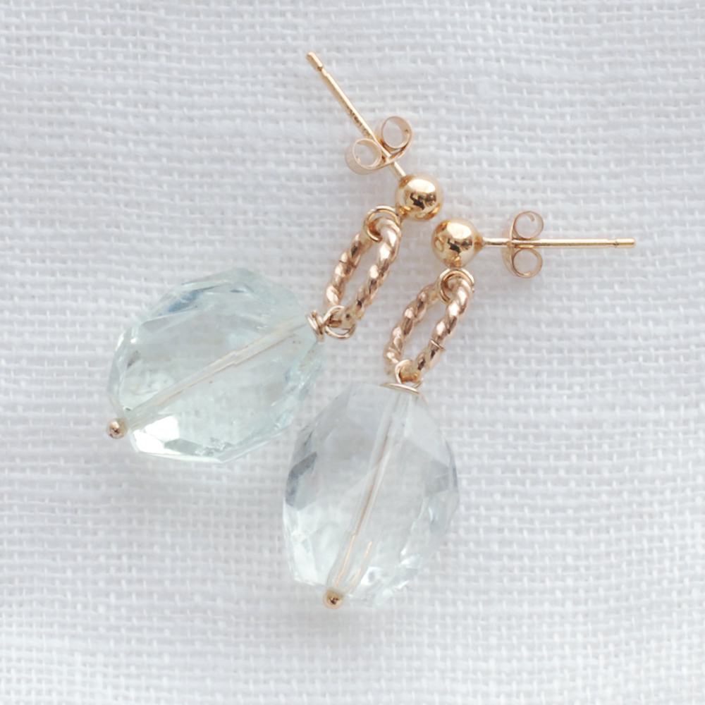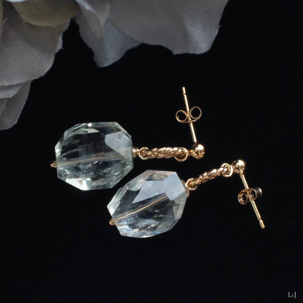 グリーンアメジストのほのかなグリーンは気品に溢れていて、そして日本人のオークル系のお肌によく馴染む色。ボールポストピアスにして、素材の魅力を最大限に引き出しました。ピアスホールからの長さは16mm。グリーンアメジストは12×10×7mm。軽い仕上がりなので、イヤリングにも向いています。お気軽に加工をお申し付けください。