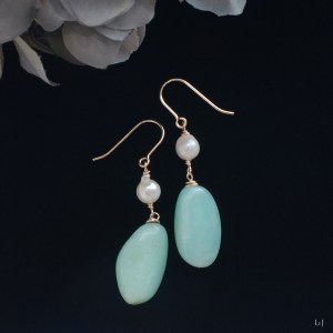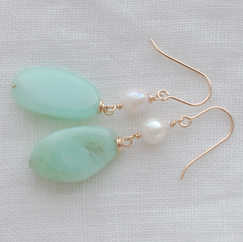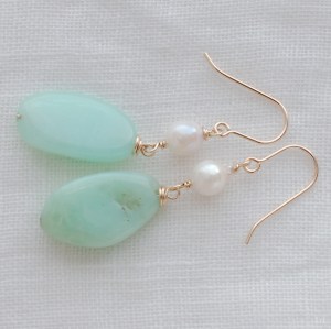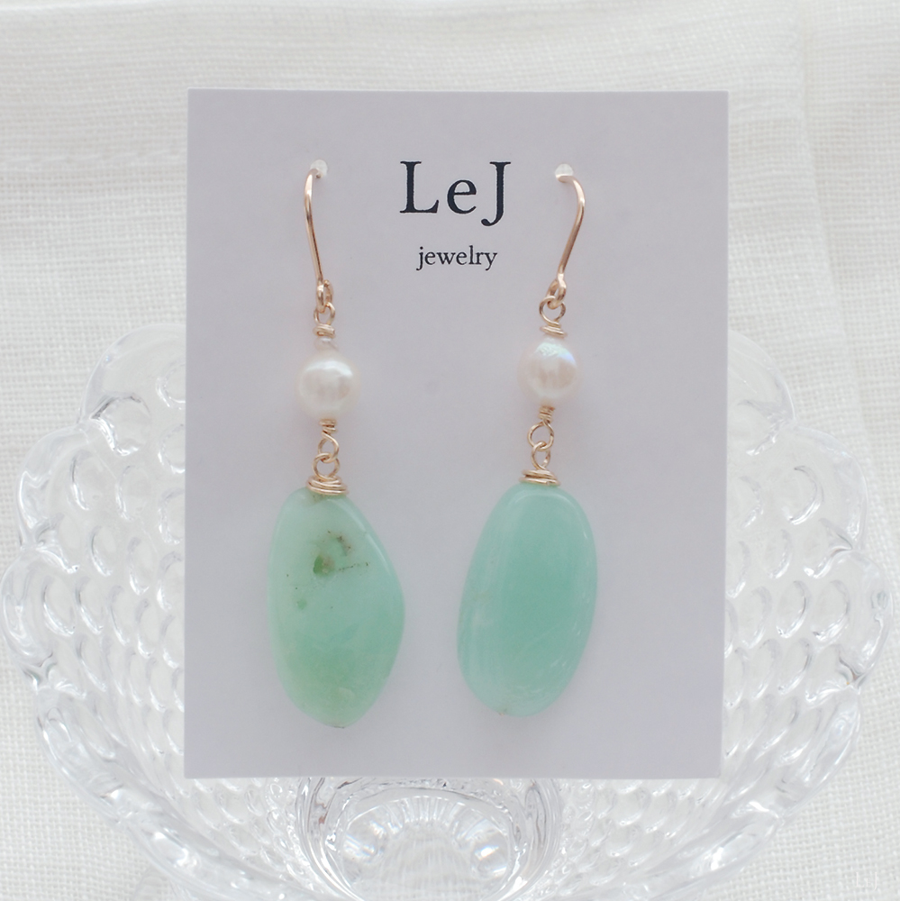 まろやかなアップルグリーンのブルーオパールとアコヤパールのピアス Dolce21