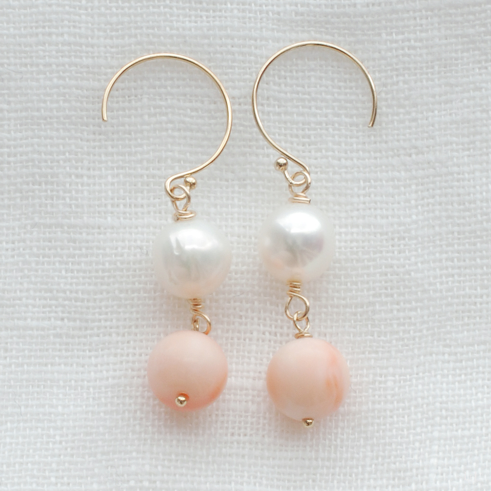 ヴィンテージ本珊瑚とパールのピアス Eunice-p をONLINE STOREに公開しました。