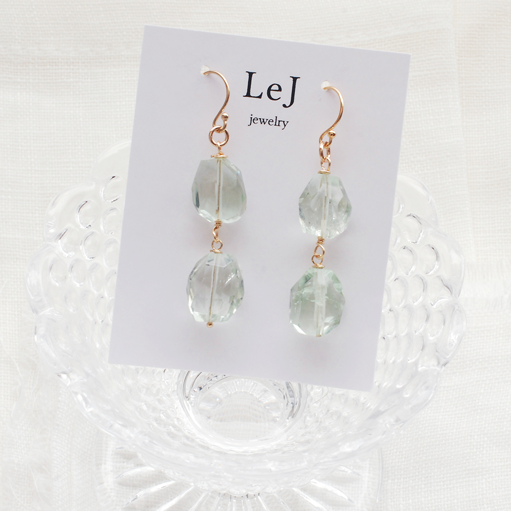 Dolce17は、グリーンアメジストにK14ゴールドフィルドのゴールド色をマリアージュしたピアス。