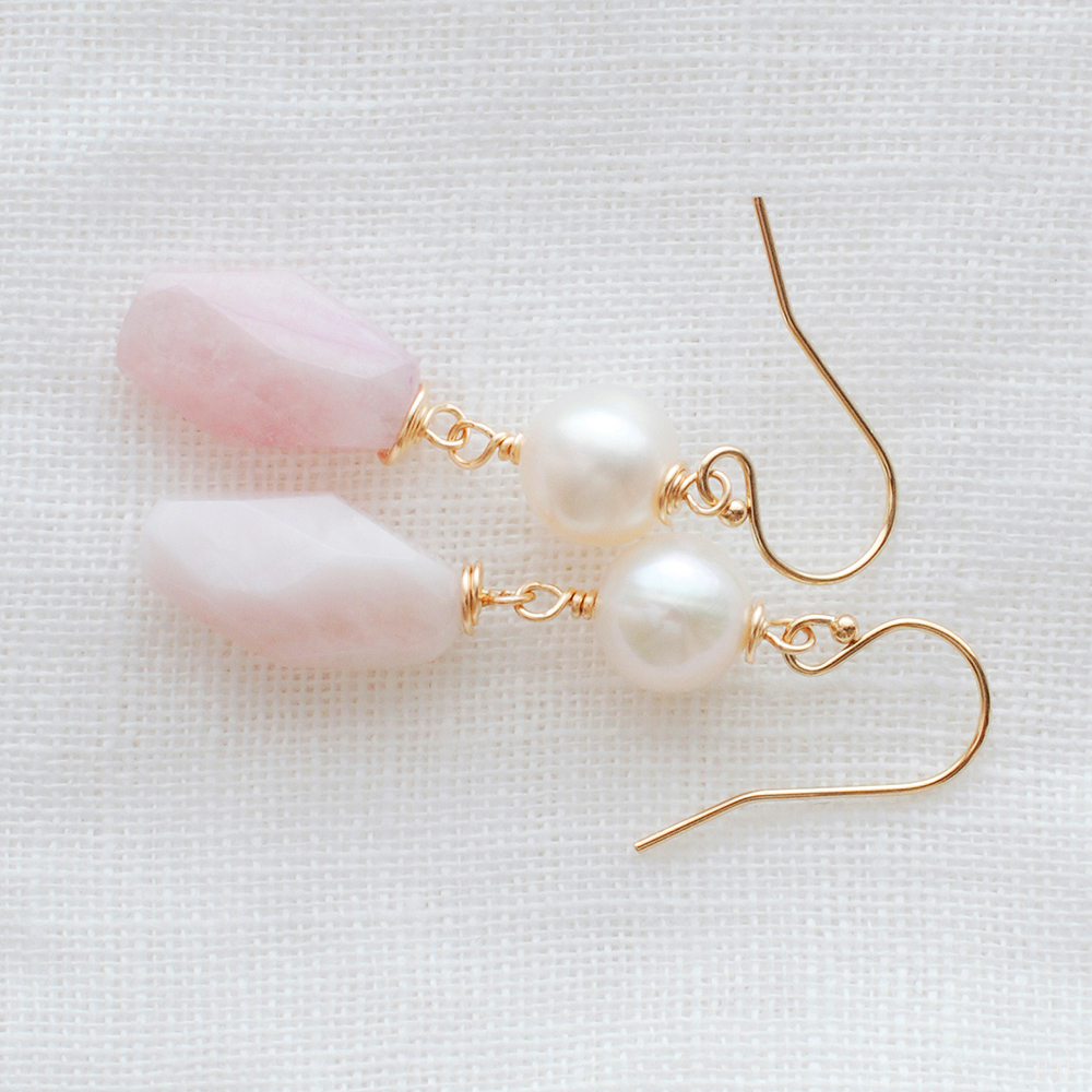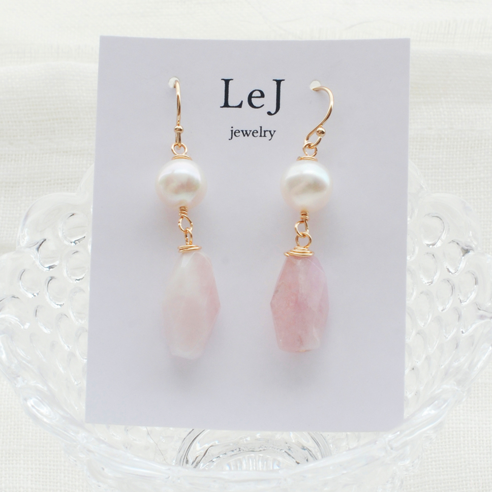 パウダリーピンクのマチエールをもつアクアマリン、ハイクオリティ 淡水パールとのマリアージュでやわらかさが加わりました。