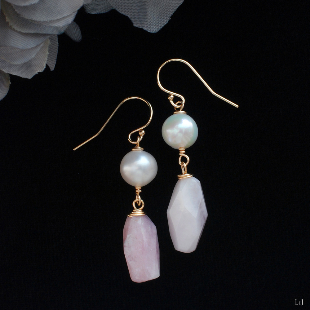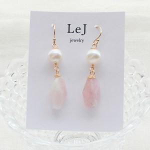 素材:マルチアクアマリン(パウダリーピンク)・淡水パール・K14ゴールドフィルド