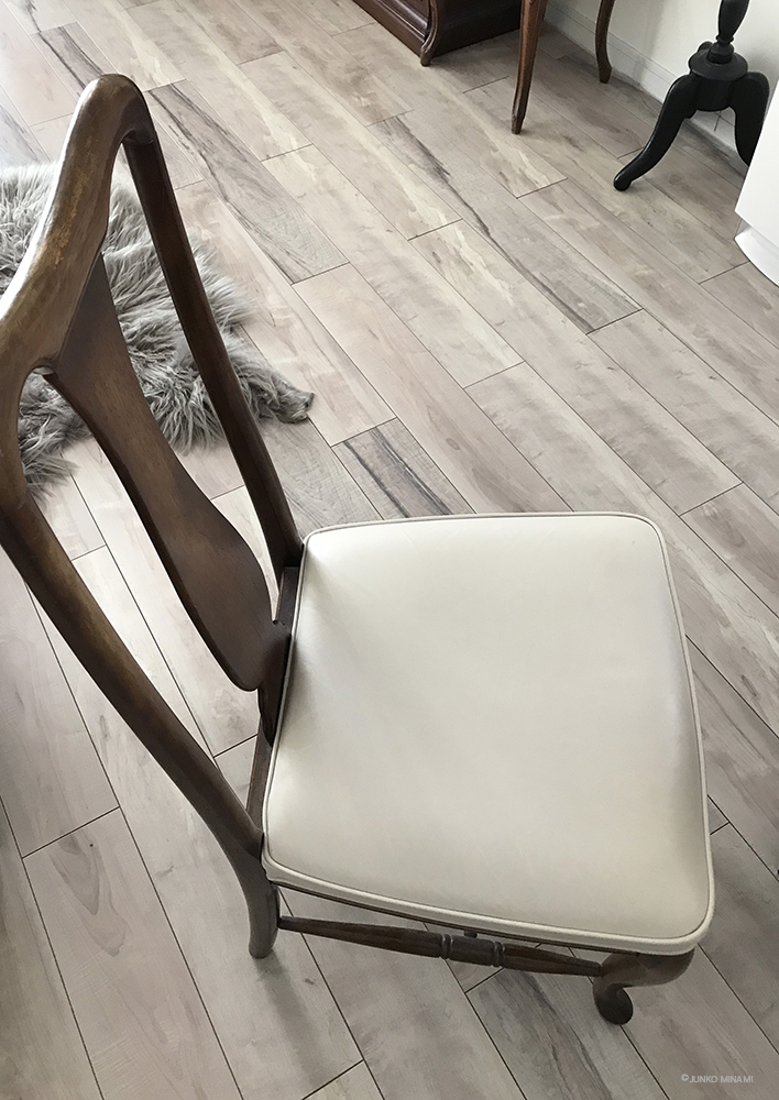 40年間ちかく使っていて、その間には座面貼り替えを布で2度、引っ越し時の3度目に本革を貼ってもらいました。2脚ずつメーカーに一ヶ月以上預けてメンテナンス、木材の部分は小傷の修復と塗り替えもされて返って来ました。革にも色見本が数十色あったのでショウルームまで行って選んだことを覚えています。Instagramに溢れる写真のようなフォトスタイリングは出来ないけれど、ごく普通の日常生活を愛して過ごしています。