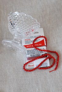 画像は、撮影に使っている器と製作中のレッドコーラル。器は無名ブランド、イタリアで入手して持ち帰りました。