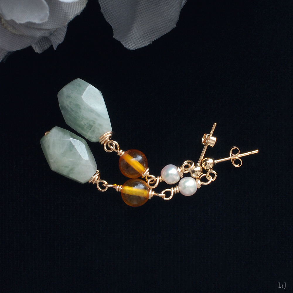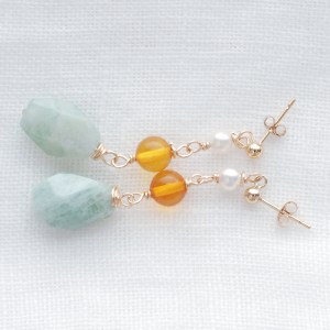 素材:アクアマリン・琥珀・アコヤパール・K14ゴールドフィルド