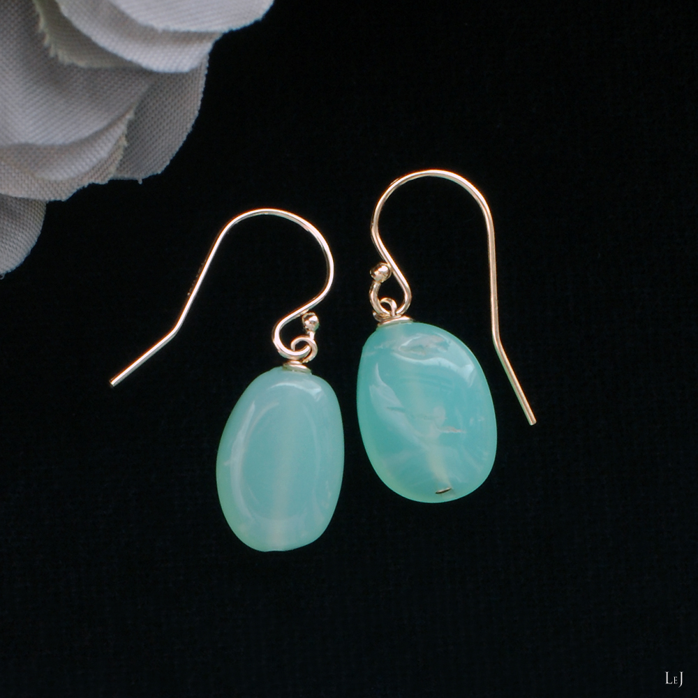 みずみずしいアップルグリーン、すべすべした手触りの美しいクリソプレーズをシンプルなピアスにした Dolce45