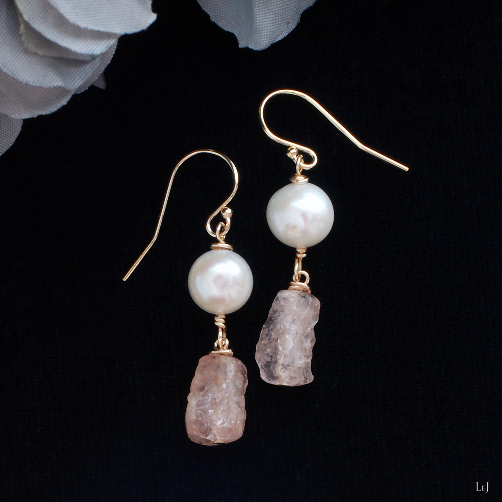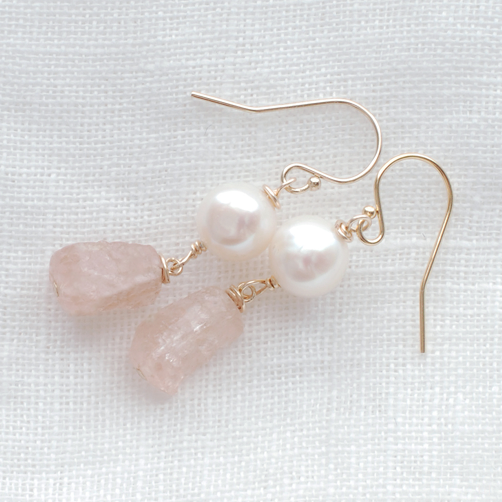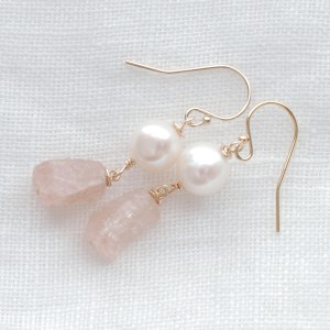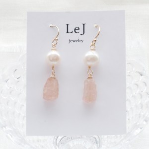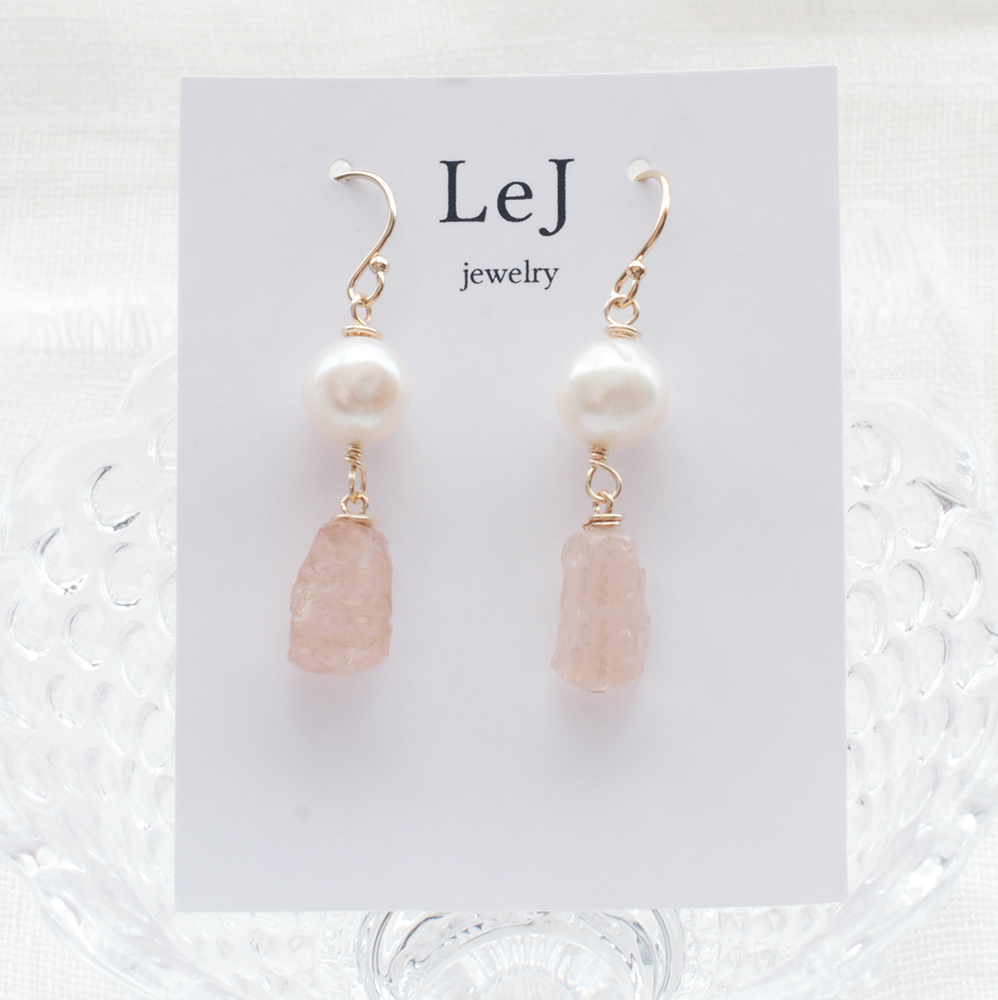 ジュレのような、憂いをおびたようなペールピンクの天然石 モルガナイトとパールのピアス Dolce41 をONLINE STOREに公開しました。