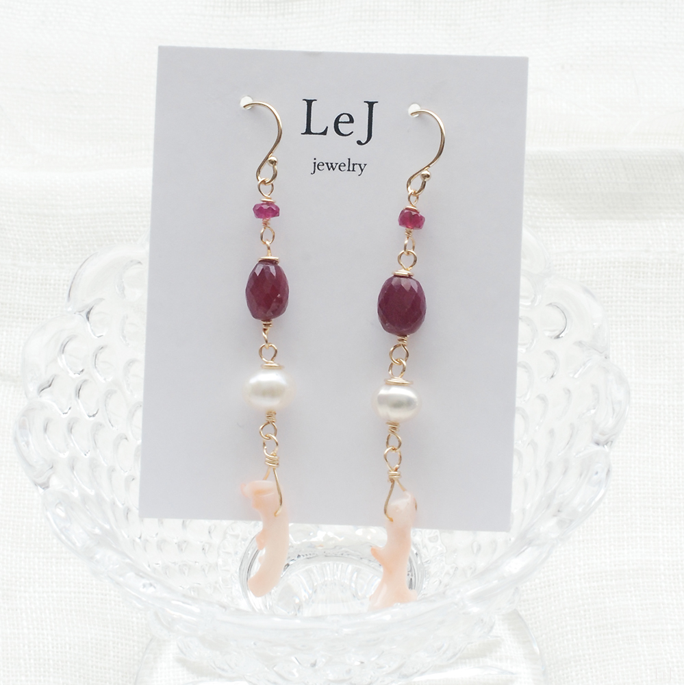 LeJ ホームページトップに”COMING SOON!アイコン”がありました ルビー、ピンクサファイアとコーラルなどのピアス Dolce33 は、 ご予約によりご購入済みとなりました。