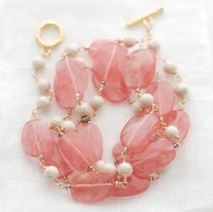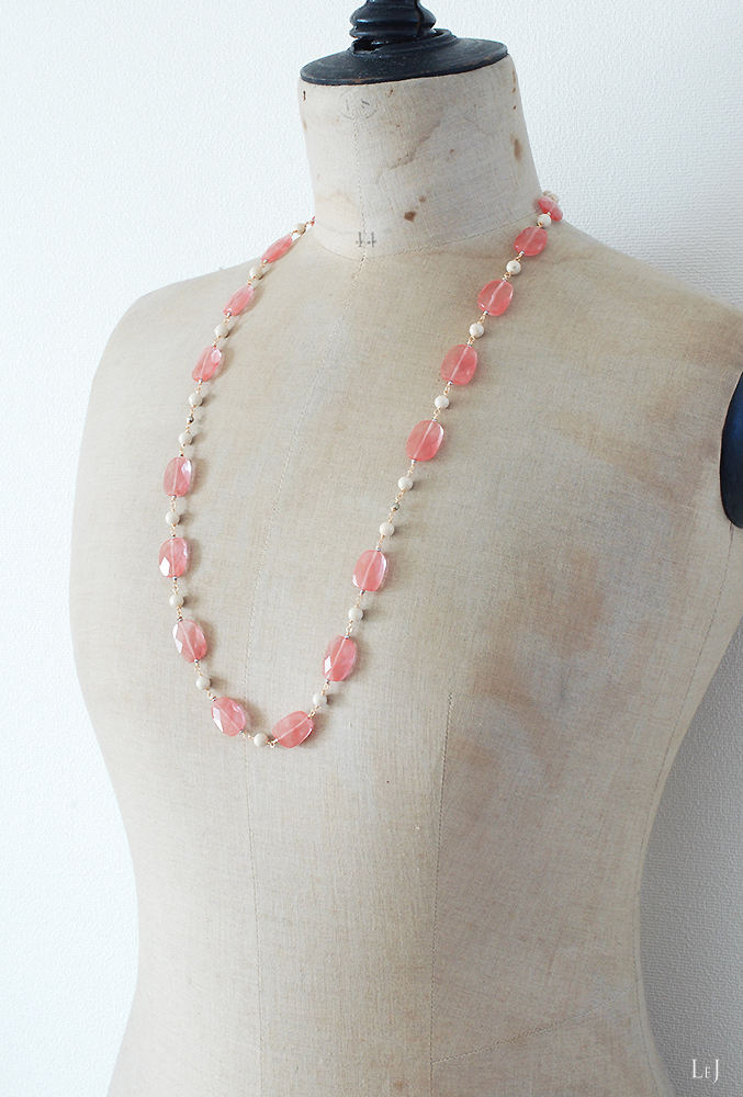 ほのかにストロベリーが溶け込んだようなチェリークオーツ、ベージュがしっとりと落ち着きを添えるリバーストーンとパイライトを添えたネックレス Marthe(マルテ) をONLINE STOREに公開しました。