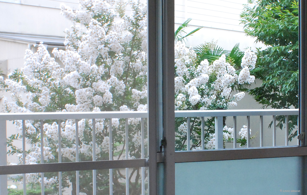 真新しい鍵で玄関の扉を開けるとまっすぐに目に飛び込んで来たのはこのシマサルスベリ。この前来たときにはまったく気づかなかったけれど、こんなに愛らしい花を咲かせる木なのでした。心がふわっと和んで、ああこれからはこうして毎朝木々を愛でることが出来るのだと思うと嬉しくなりました。