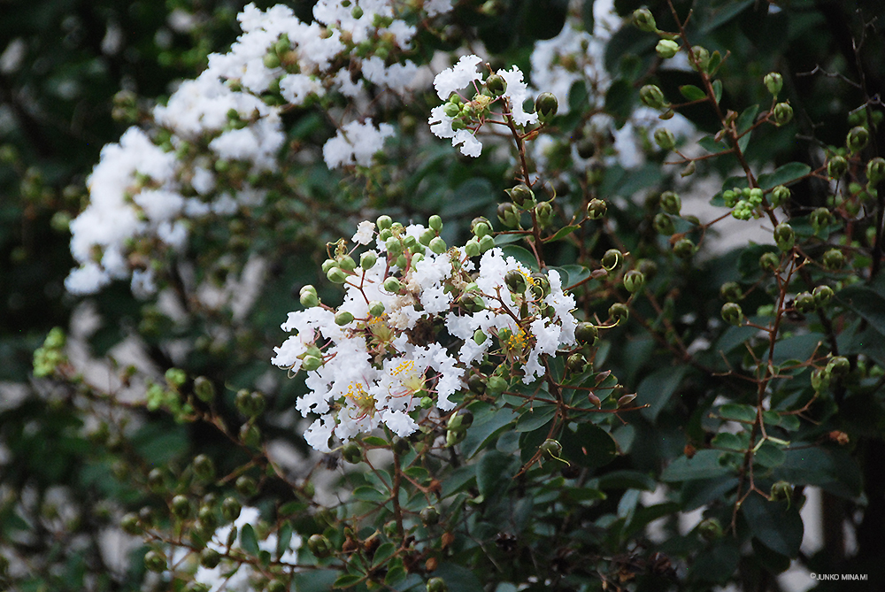 写真は、お庭のシマサルスベリ。夏の初めから咲き始めてまだこんなに咲き続けています。外から帰ると玄関の真正面に見える高さ、本当に愛らしい花です。